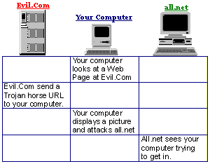 This is interesting because it means that (and is the first major real-world incident where) a Web page can contain code that causes your users browsers to automatically launch attacks against your sites or other sites, using your computers as their launch points. Your user doesn't have to click a special button to do this, it's a Trojan Horse embedded within the normal loading of another Web page or image.