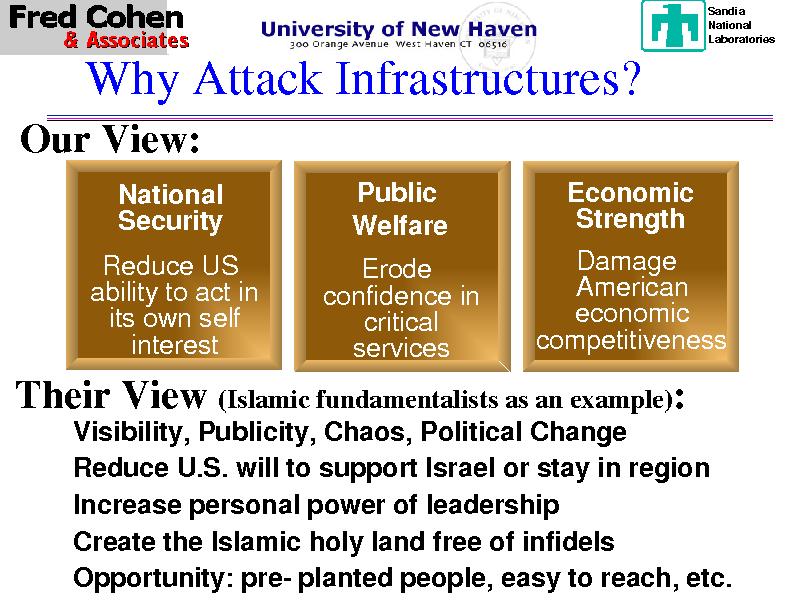 Those who would attack the infrastructures would do so to: