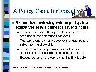 - The game covers all major policy issues in the area under consideration (info-sec)