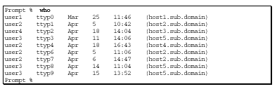 The output from the "who" command can easily be modified to hide a skilled intruder’s existence, as the command gets its information from the /etc/utmp file.