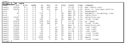 Even if an intruder is no longer logged in to a (potentially) penetrated system, a process may have been left running by the intruder to continue performing tasks. This section shows you how to use these commands to display the active processes running on your system: