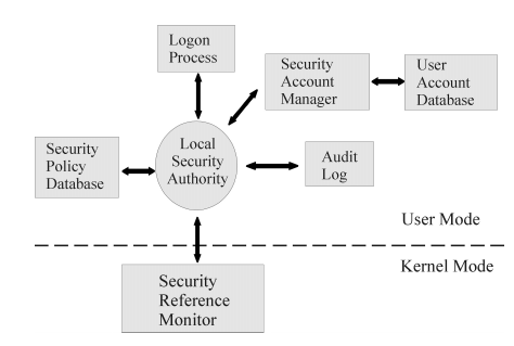 In addition to these components, NT also includes logon processing, access control and object security services. Together these elements form the foundation of security in the Windows NT operating system, which is called the security subsystem. This subsystem is known as an integral subsystem since it affects the entire operating system.