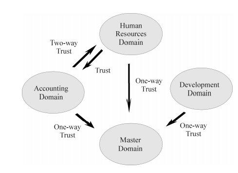 Trust relationships are defined in only one direction. To obtain a two-way trust, both domains must trust each other. The trusted domain is where the accounts reside, known as the account domain. The trusting domain contains the resources, known as the resource domain.